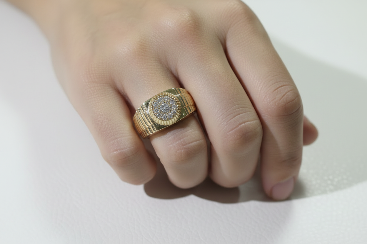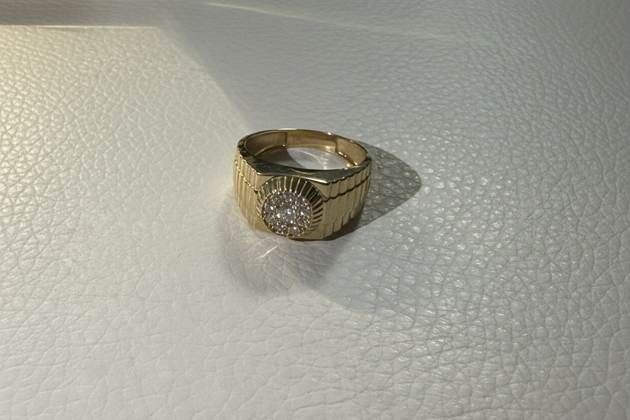 14K Gold Round Zirconia Cluster Ring – Size 10