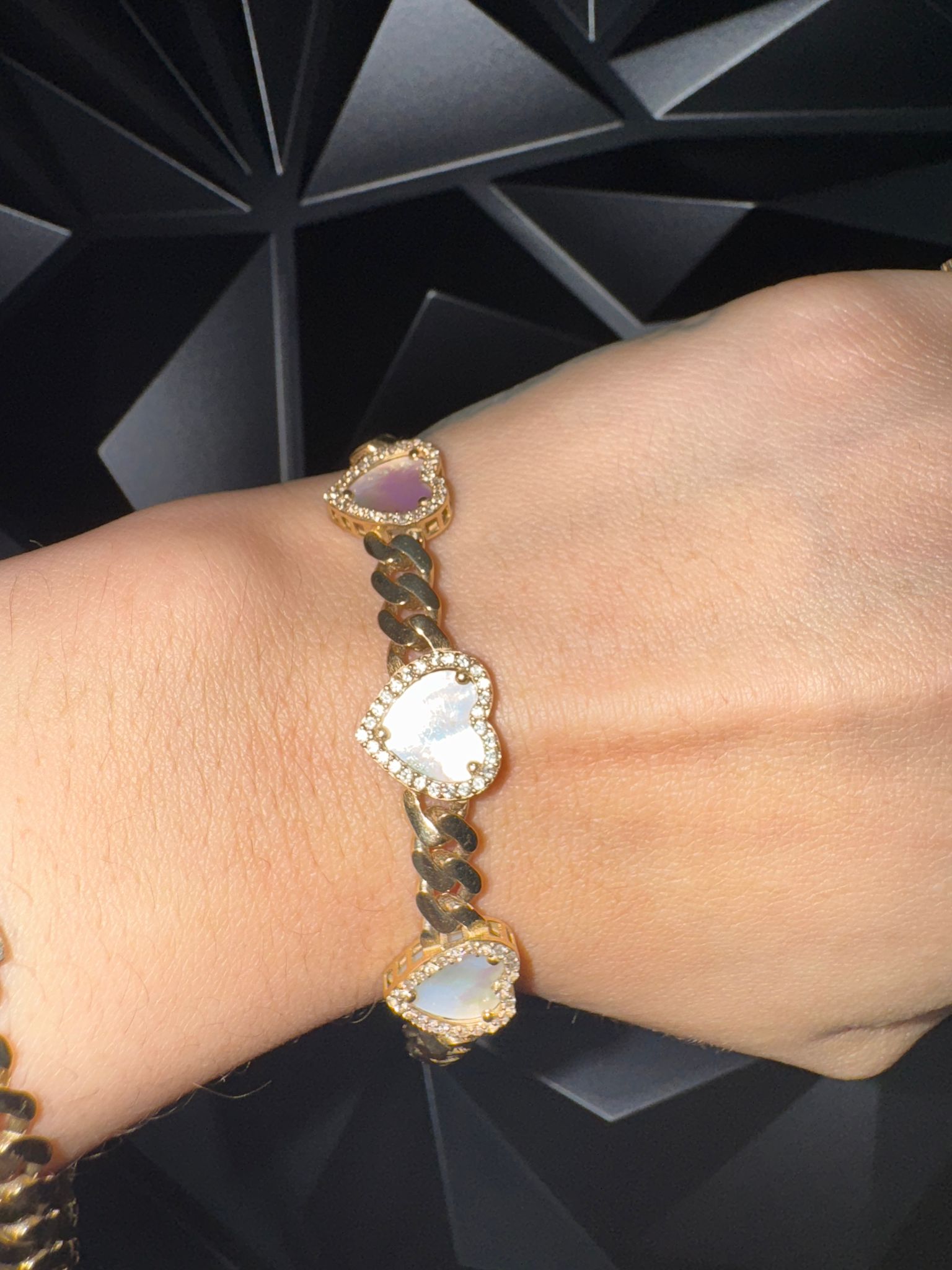 Cuban Gold 10KT Link Mother of Pearl Heart Bracelet” 6mm